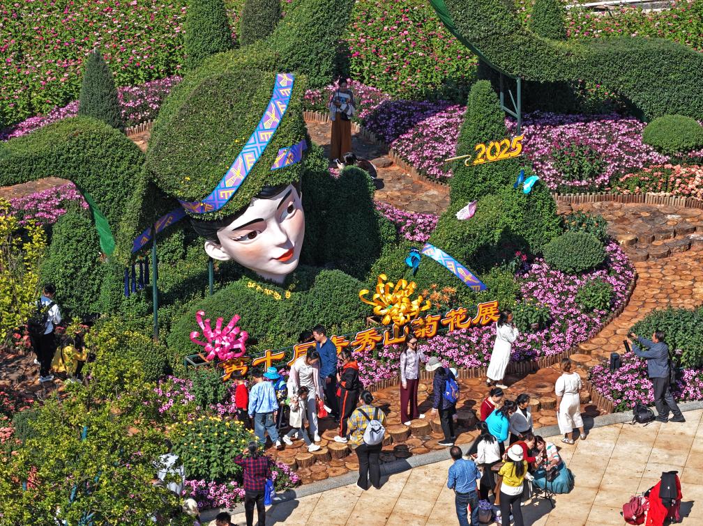 11月22日,第十届青秀山菊花展在广西南宁市青秀山风景区举行,本次花展汇集数万盆精品菊花。