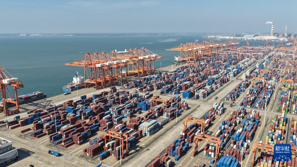 11月29日,广西北部湾港钦州自动化码头集装箱有序堆叠摆放。(何家海 摄)