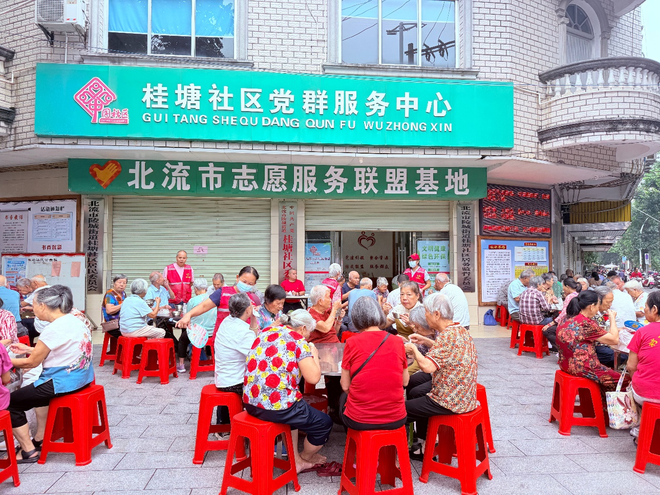 “一元长者早餐”共享社会温情。北流市桂塘社区聚焦服务老年人群体需求,创新“一元长者早餐”作为服务群众的重要举措。在党建引领“1+4+N”机制下,4支队伍齐发力,社区工作者负责日常运营管理,热心公益事业的党员志愿者带头轮值服务,厨师志愿者精心搭配餐食,形成多方协同的服务格局。为保障项目可持续,社区推行“企业赞助+爱心捐赠+老人自付一元”经费模式。如今,每天60余名老人在这里吃上热乎早餐,早餐点不仅是“饭堂”,更成为党组织联系群众的“连心桥”,桂塘社区今年也获评全国“最美志愿服务村(社区)”。