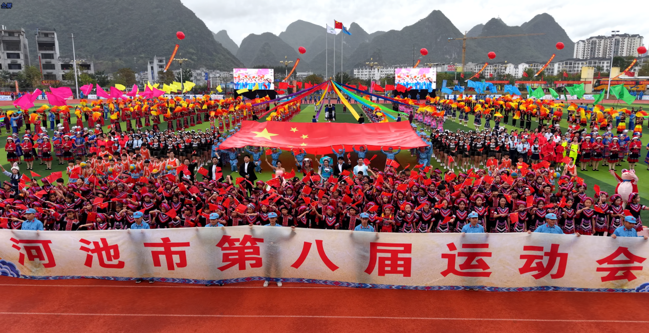 12月24日,以“全民健身 • 健康你我”为主题的河池市第八届运动会在大化瑶族自治县公共体育场开幕,来自全市11个县(区)以及市直机关共12个代表团的2000余名运动员将展开为期6天的角逐。本届运动会共设有篮球、足球、气排球、乒乓球、羽毛球、投绣球、田径等7类比赛项目。(黄晗 摄影报道)