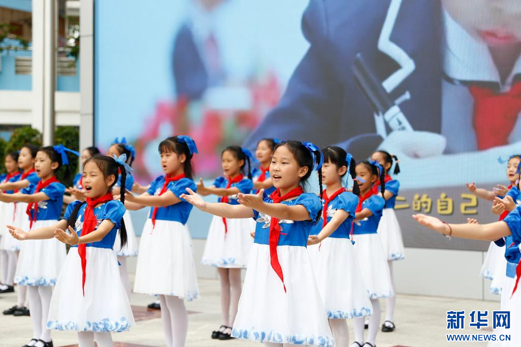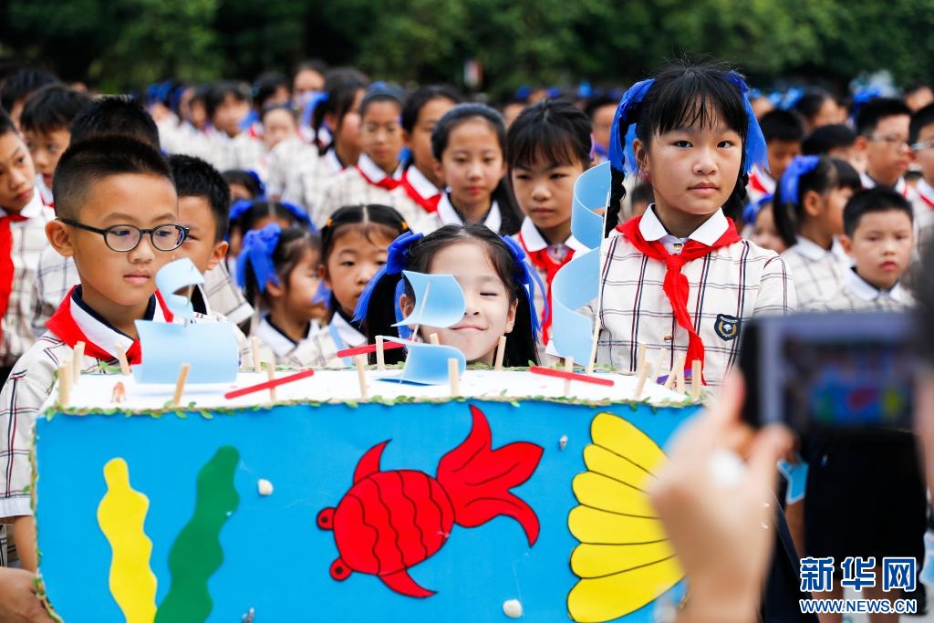 8月28日,南宁市滨湖路小学学生在活动中合唱歌曲。