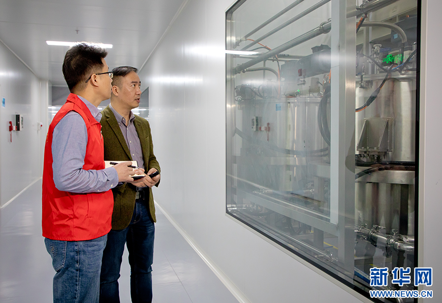 南宁市工业振兴特派员甘瑜走访多氟多20GWH锂电池项目,了解企业发展难题和诉求。李嘉玮 摄