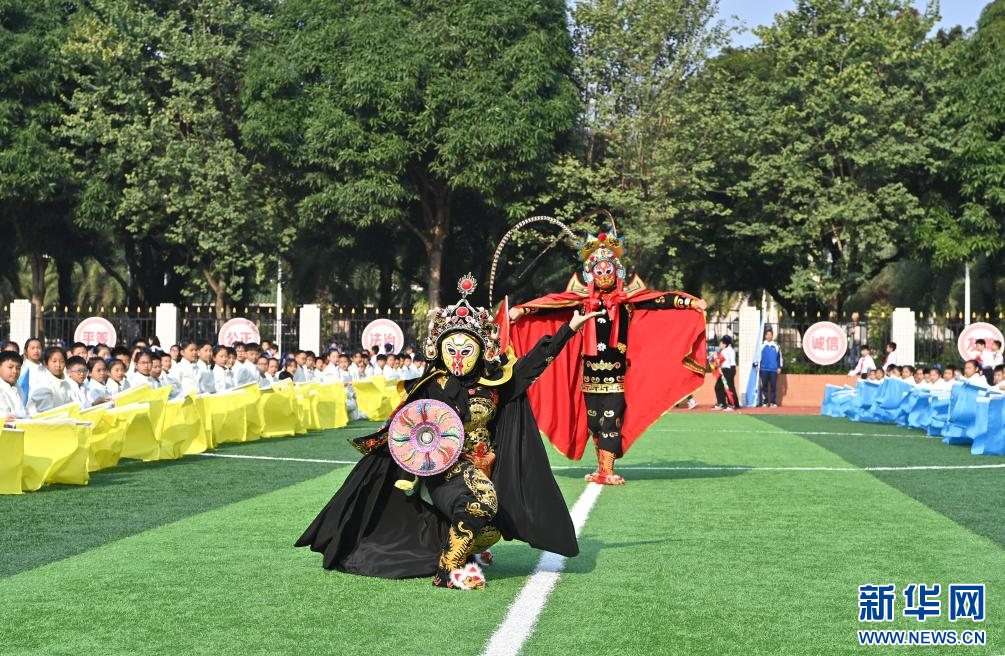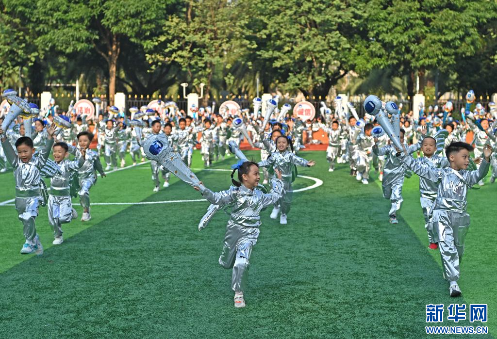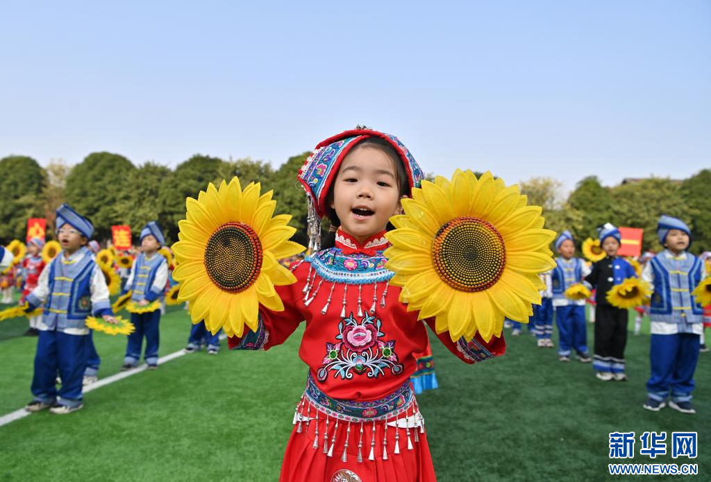 当日,广西南宁市滨湖路小学举行主题为“逐梦新时代 健体向未来”的体育文化节。开幕式上,孩子们表演民族歌舞,跳腰鼓舞,展示阳光运动团体操,共度欢乐时光。