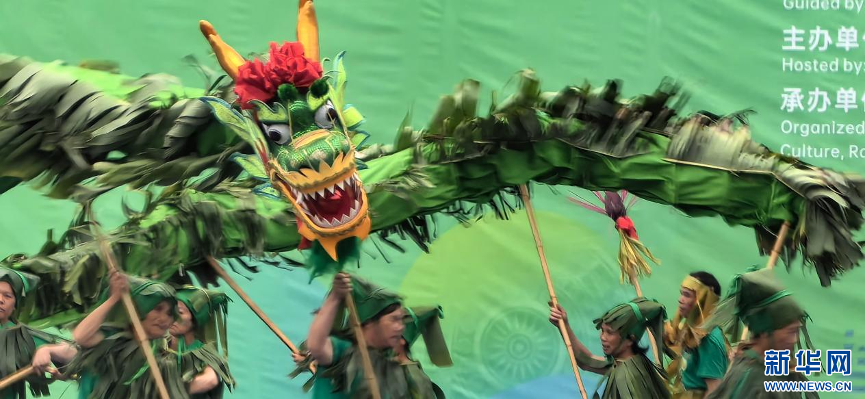 广西南宁市青秀区壮族芭蕉香火龙队表演《芭蕉龙舞庆祥瑞》。牙举成 摄