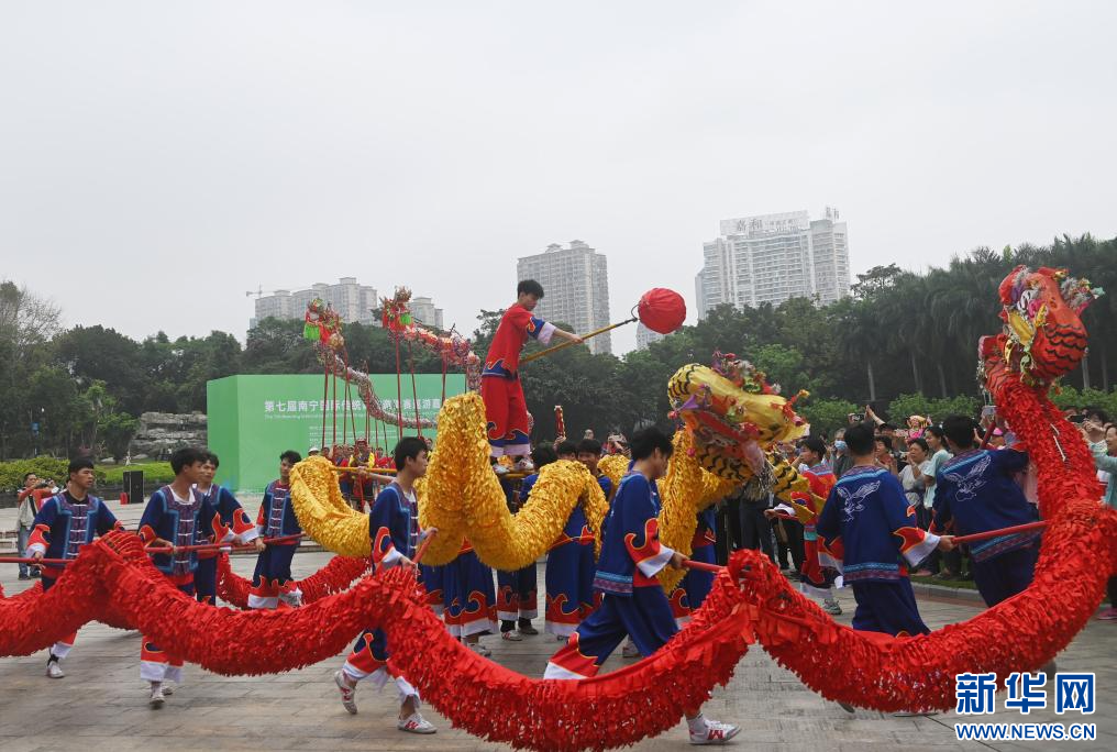 当日,第七届南宁国际传统舞龙邀请赛巡游嘉年华在南宁南湖公园举行,来自国内外的22支舞龙队开展5公里巡游。该活动是今年广西“三月三”系列庆祝活动之一。