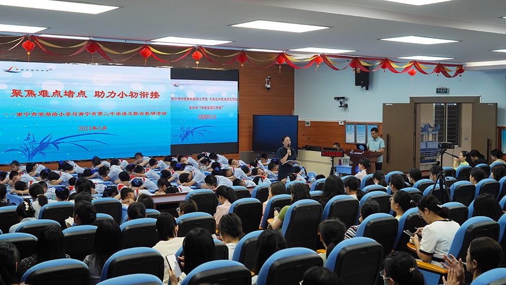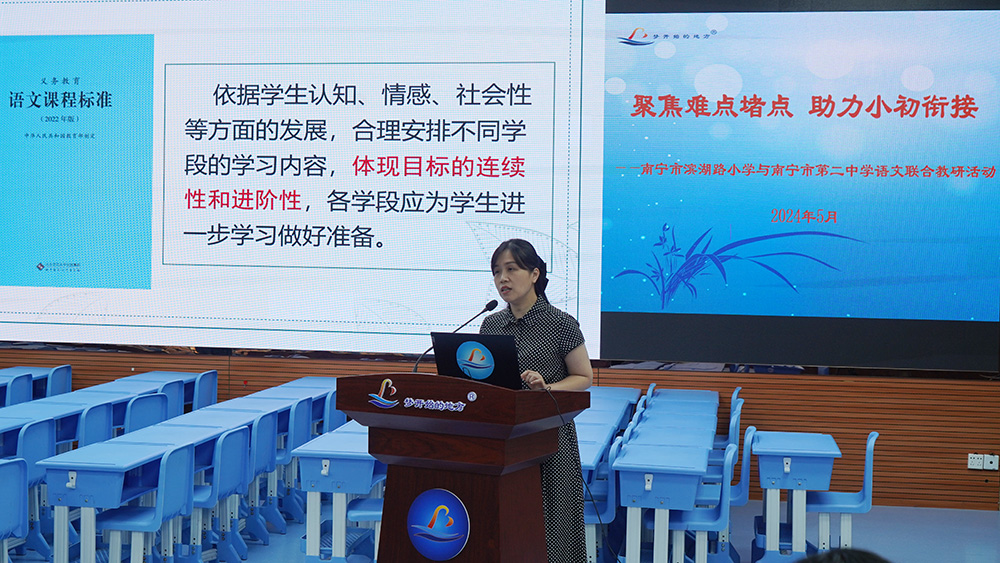 “今天是基于新课标理念的小初衔接教研活动,帮助老师们明确语文教学方向,强化梯度设计,同时,我们不仅要聚焦课堂教学,更要聚焦学科育人,激发学生的学习兴趣,培养自主学习能力,这样才更好帮助他们走稳每一个阶段的学习步伐。”南宁市滨湖路小学副校长黄瑾说到。