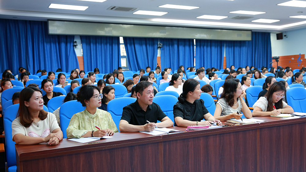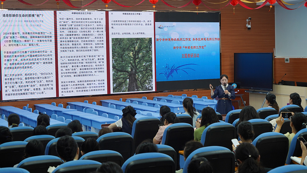 针对语文教学的小初衔接,南宁二中正高级教师、广西中小学“名师党支部书记工作室”主持人申颖谈了自己感悟,她认为,语文作为一门重要的基础学科,教学是一个常教常新的过程,需要老师不断通过课堂内外的勾连跃迁来提升教学水平,语文教学不仅仅在课堂里、课文里,更要关注生活,放眼世界,更好激发学生的想象力、创造力。