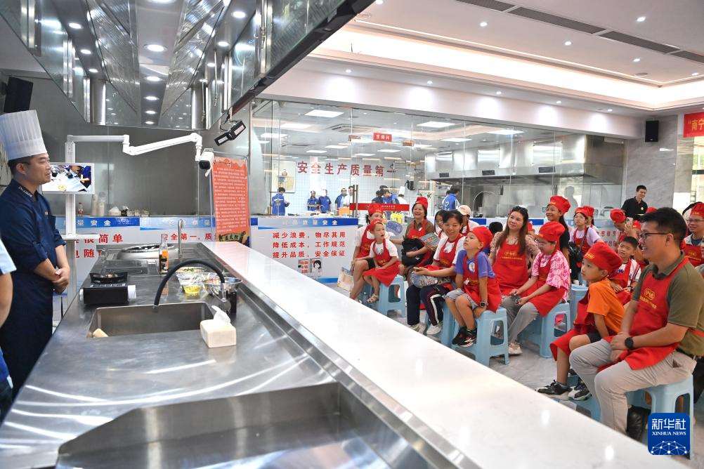 8月10日,孩子和家长在南宁市第一职业技术学校学煮老友粉。