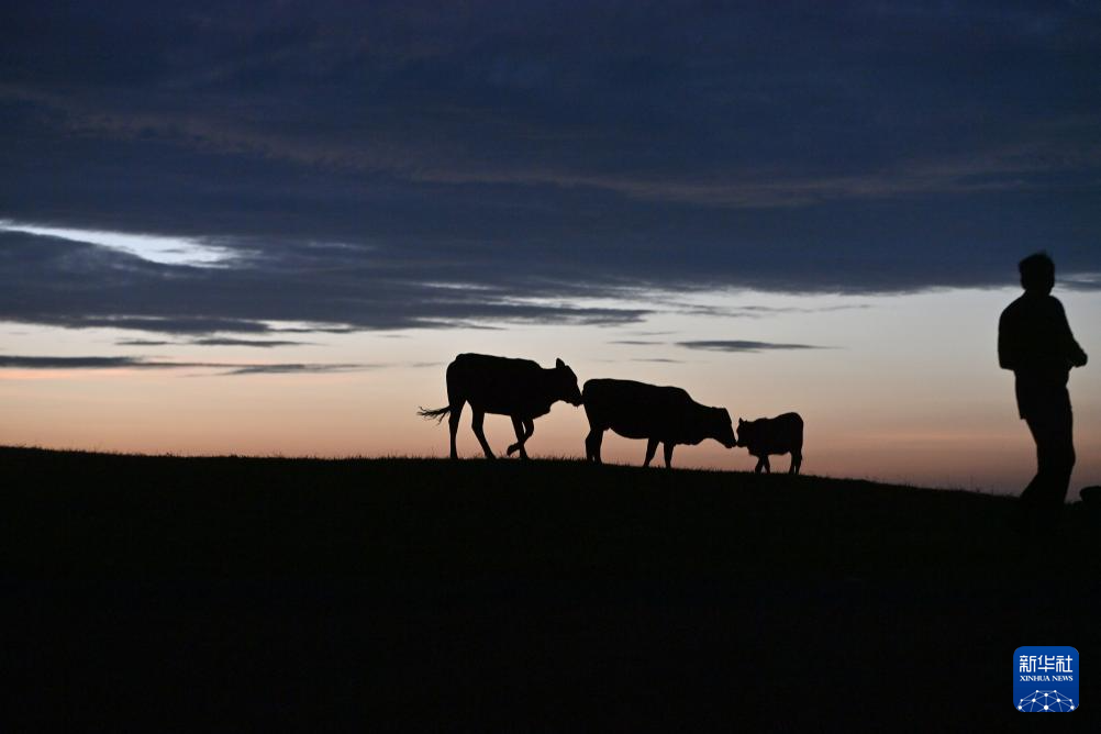 在融水苗族自治县杆洞乡尧告村高山牧场,几头黄牛在吃草(8月14日摄)。