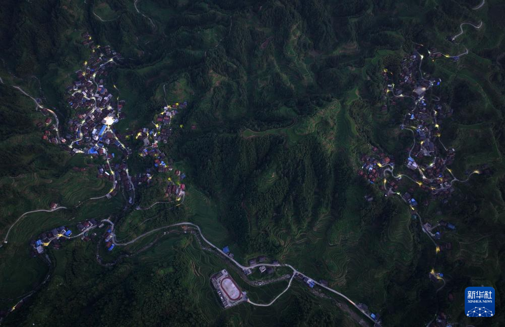 这是融水苗族自治县杆洞乡尧告村夜色(无人机照片,8月14日摄)。