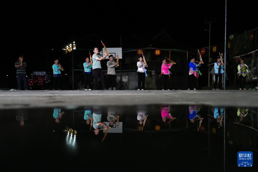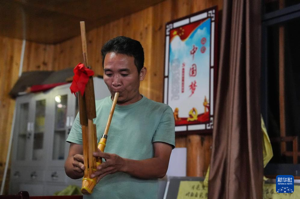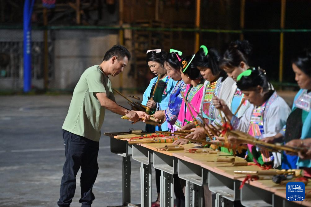 梁安合在乌英苗寨妇女夜校授课芦笙(2024年9月10日摄)。
