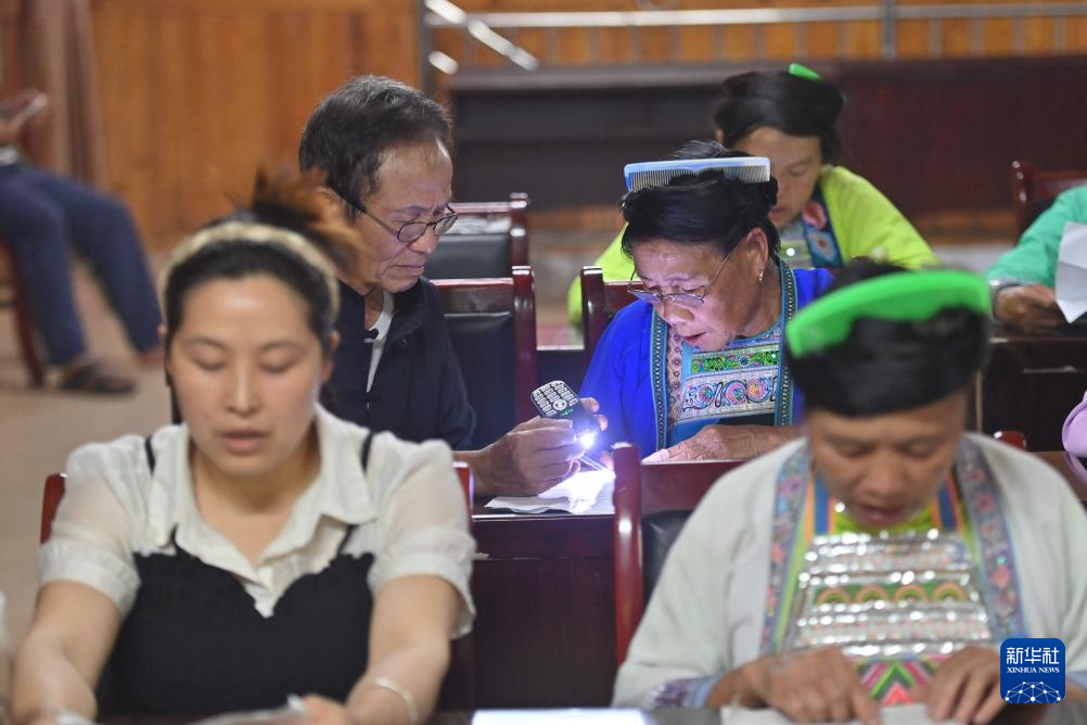 梁秀前在乌英苗寨妇女夜校准备芦笙授课(2024年9月10日摄)。