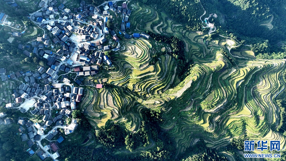 金秋时节,村里层层叠叠的金色梯田、独具特色的苗寨民居、曲折盘旋的山间道路,构成一道道迷人风景线。