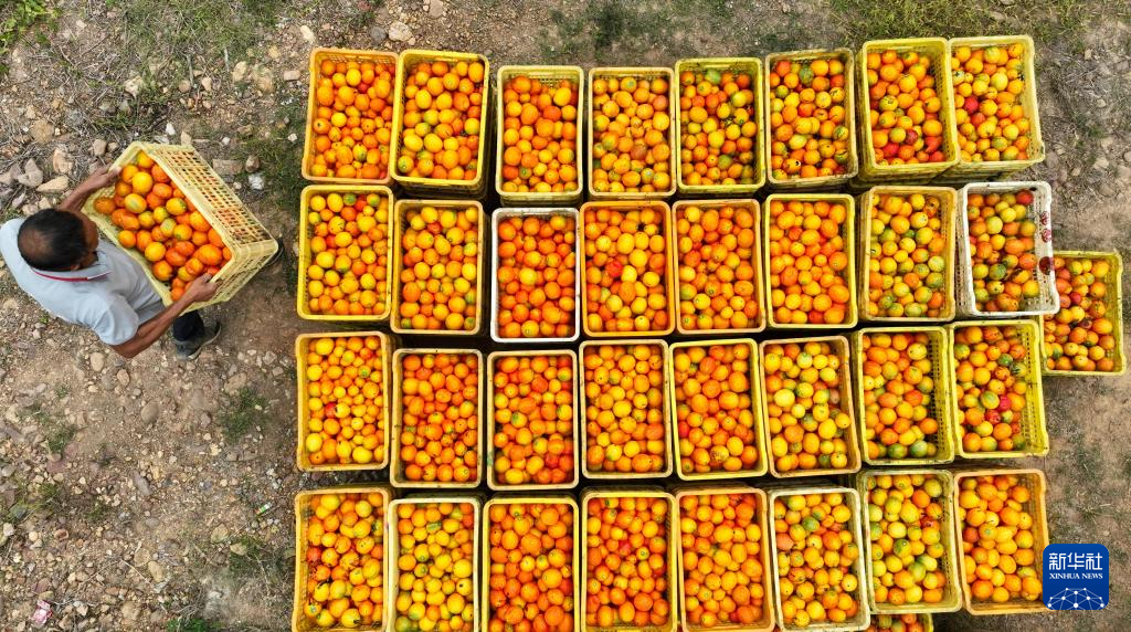 10月29日,在广西柳州市鹿寨县拉沟乡,工人在中药材种植基地里装运刚采摘的吊瓜(无人机照片)。
