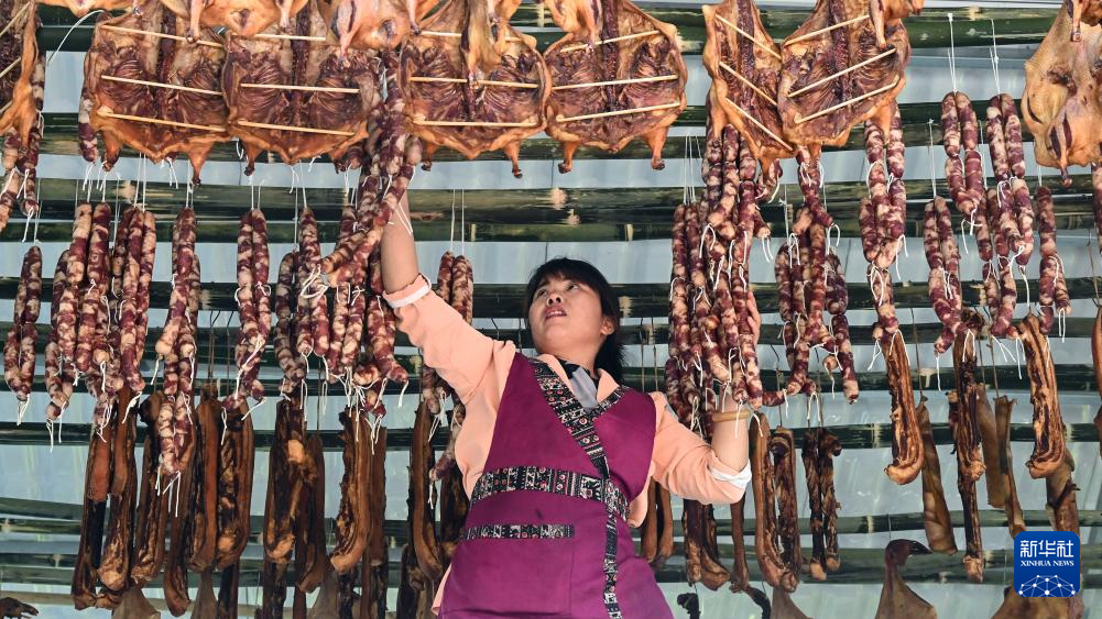 在广西三江侗族自治县,当地侗族群众有在立冬前后,赶制腊肉、腊肠、腊鸭等腊味食品的传统习俗。各种腊味食品已成为三江县具有代表性的侗族美食,每年都会吸引众多游客选购。与此同时,侗族群众还通过线上线下的销售方式将腊味供应市场,增加收入。