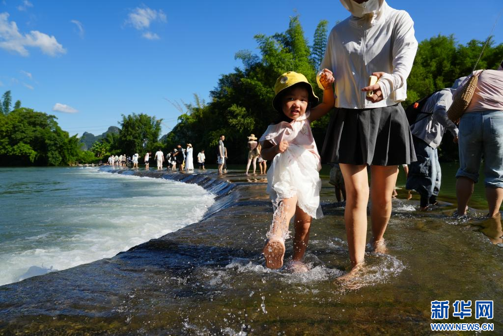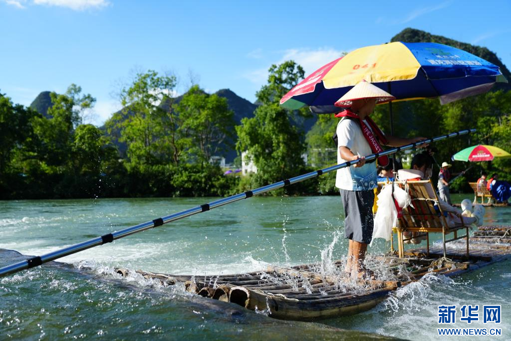 暑期来临,广西桂林市阳朔县旅游人气旺。游客徜徉在绿水青山间,乐享夏日时光,尽情感受大自然的美好。