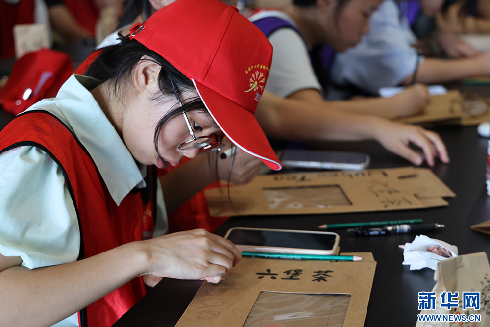 学生在梧州市苍梧县制作六堡茶文创。邹雨成 摄